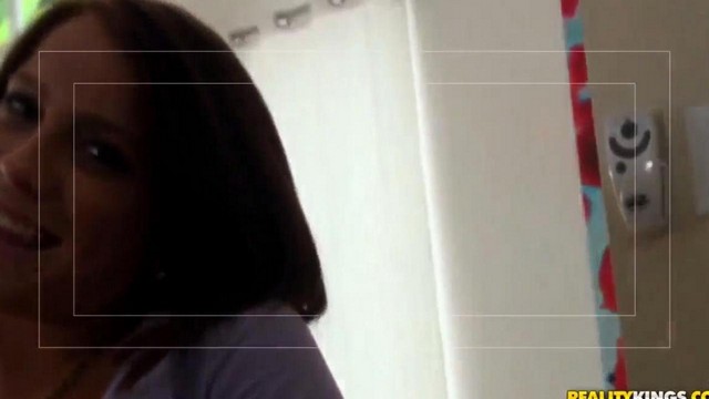 Дрочка и минет от шатенки закончились спермой на маленьких сиськах